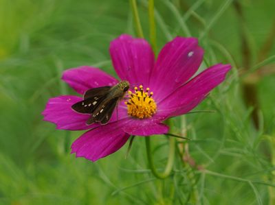 付近にて撮影 コスモスの花に蛾 |