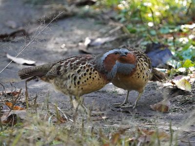 大池公園 我々に正月挨拶に6羽のコジュケイ |