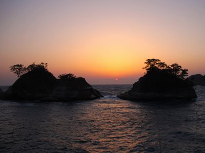 宍道湖に沈む夕日が、嫁ヶ島 |