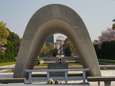 慰霊碑より原爆ドームを見る