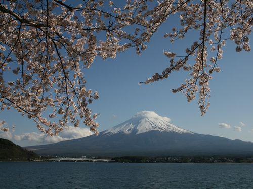 河口湖より富士山と桜
