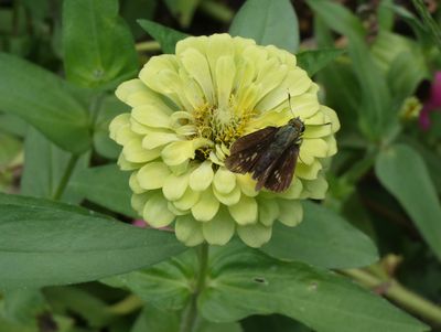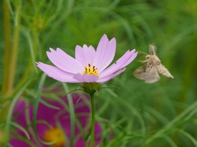 付近にて撮影 コスモスの花に蛾 |