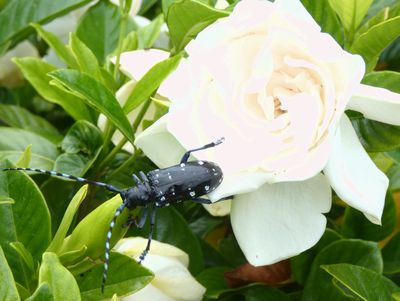 ゴマダラカミキリがクチナシ 2021年6月30日
