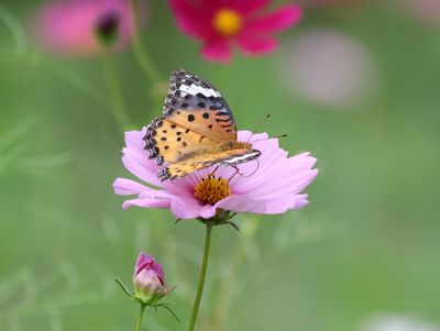 付近にて撮影 コスモスの花に蝶 |