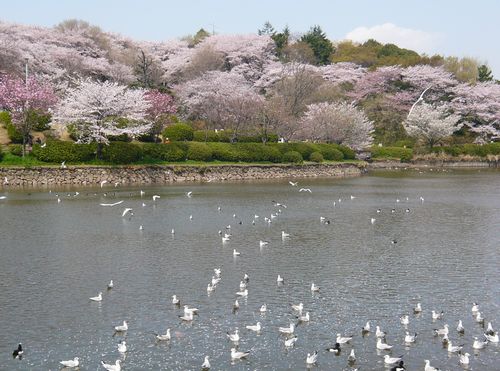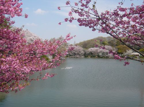 桜満開 四季を通して散歩に最適でカワセミ、蓮の花 |