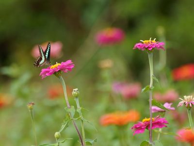 蝶アオスジアゲハと百日草 2017年6月 |